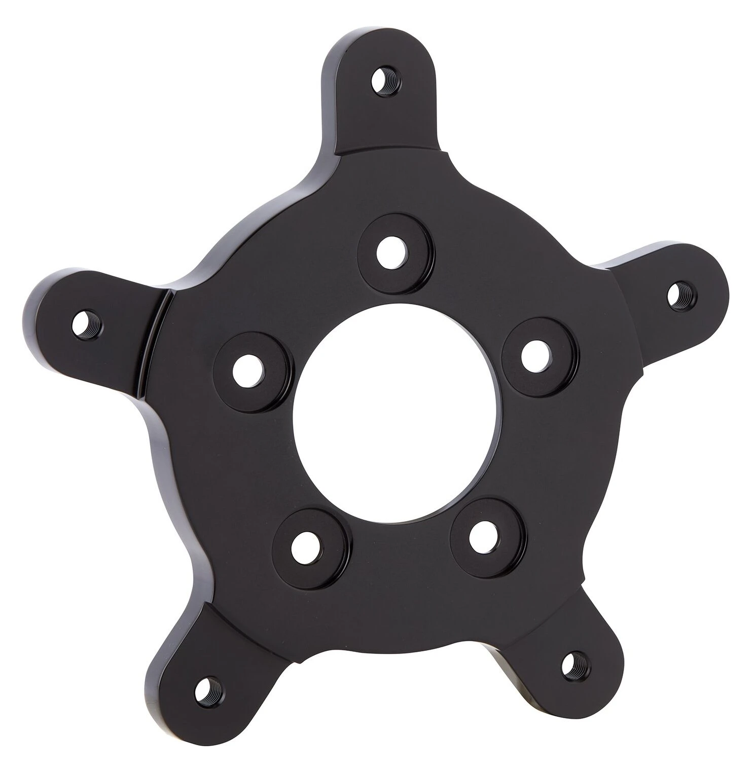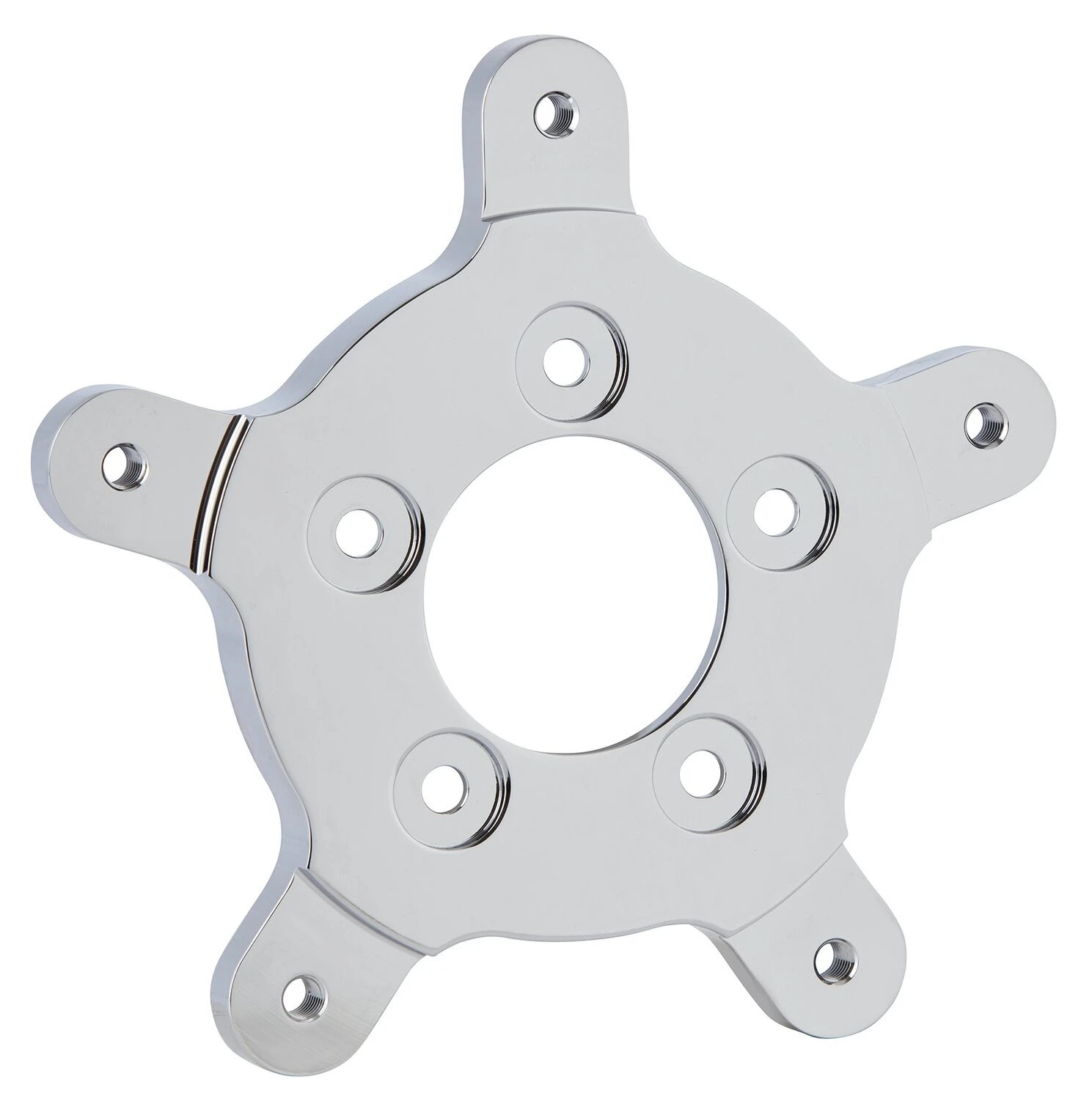 Universal design allows 11.8″ spoke mounted factory FLT front rotors to be installed on most 5-bolt HD custom wheels.