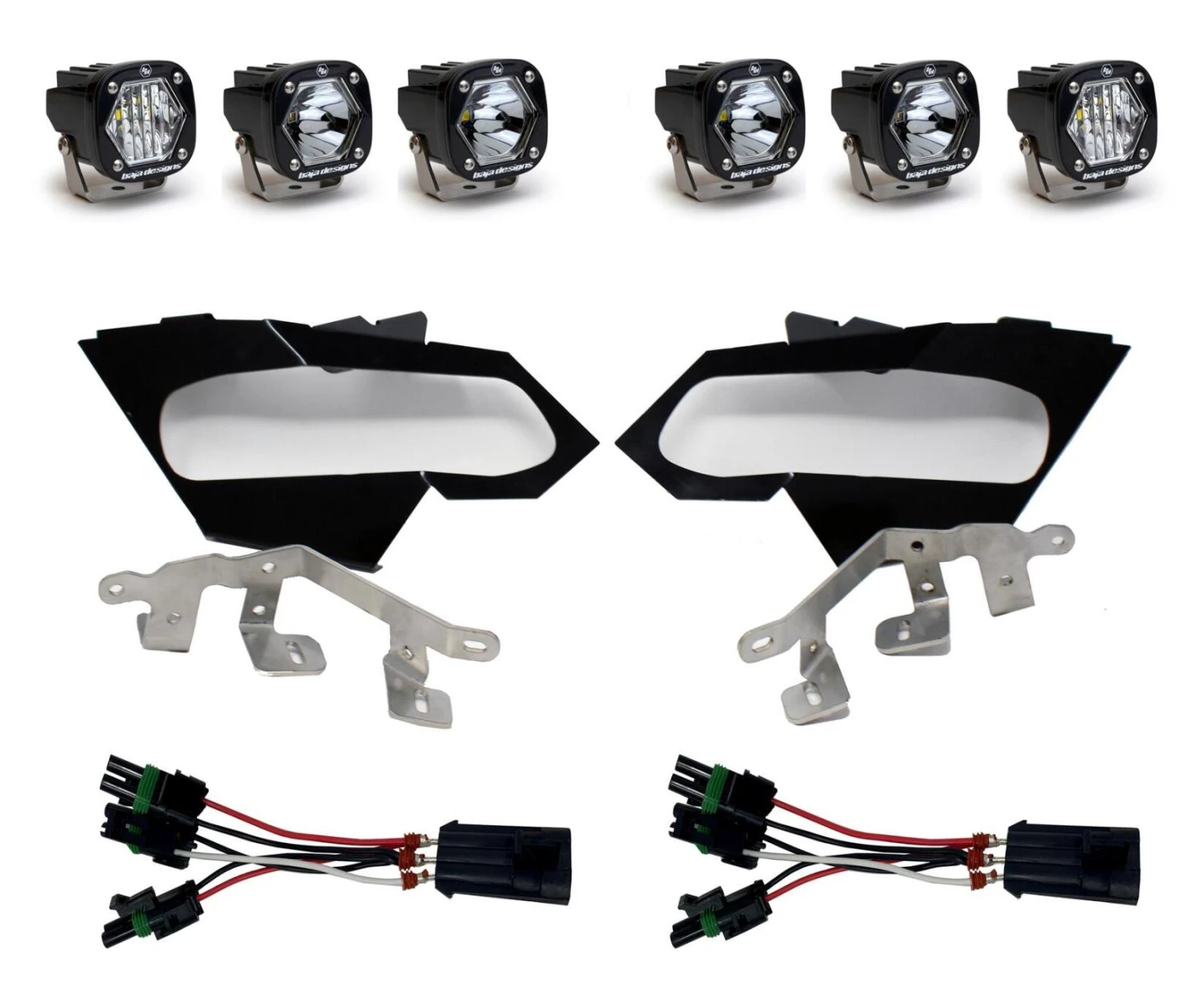 Baja Designs spent lots of time in R&D with this kit, and the result was creating a lighting kit that gives you the performance and style your Can-Am X3 deserves. With the low amperage draw of the six S1 lights this kit will not draw a substantial amount over the stock lights, but it will greatly improve your driving experience. With the plug and play wiring system and precision cut and bent brackets installation is a breeze. If you’re looking for lights that will set your X3 apart from the crowd and also give you race quality lighting this is the kit for you!