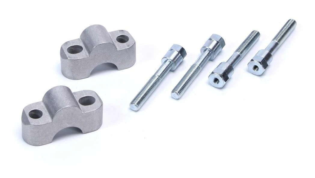 Includes a pair of handlebar riser blocks and longer hardware to raise the bars by 20mm (0.8″). Does not require longer cables or hoses. Clear anodized aluminum construction.