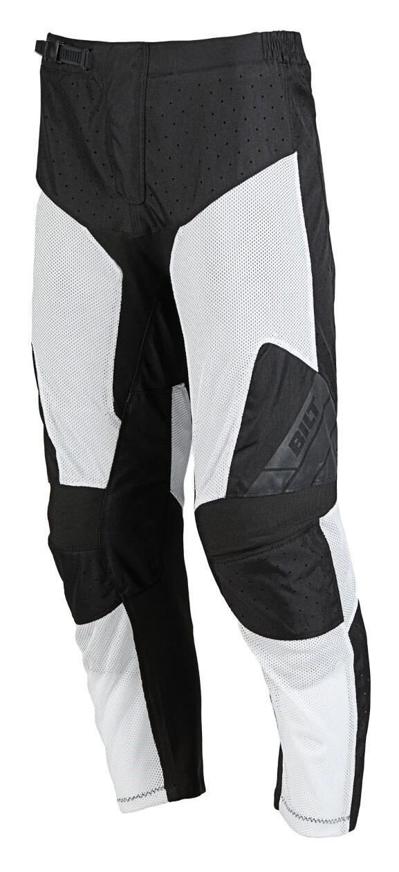 The BILT Velocity Air MX Pants sport a heavy duty 600D nylon construction to last season after season of hardcore use and abrasion. Stretch knit panels at crotch, inner thighs, rear yoke, back of knees and calves ensures a great all around fit. Pre-curved tailoring is cut to suit a wide range of riding positions. At the waist, riders are treated to a quick-release ratchet closure for easy adjustment on the fly. A silicon grip surface on the inner side of the waist keeps jerseys tucked and ensures the pants stay exactly where you put them. The Velocity Air Pants use YKK zippers and feature lightly padded knees.