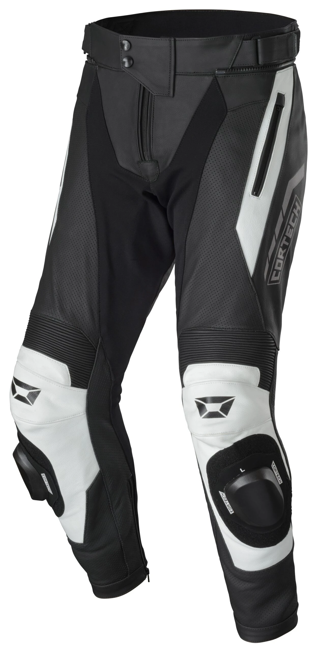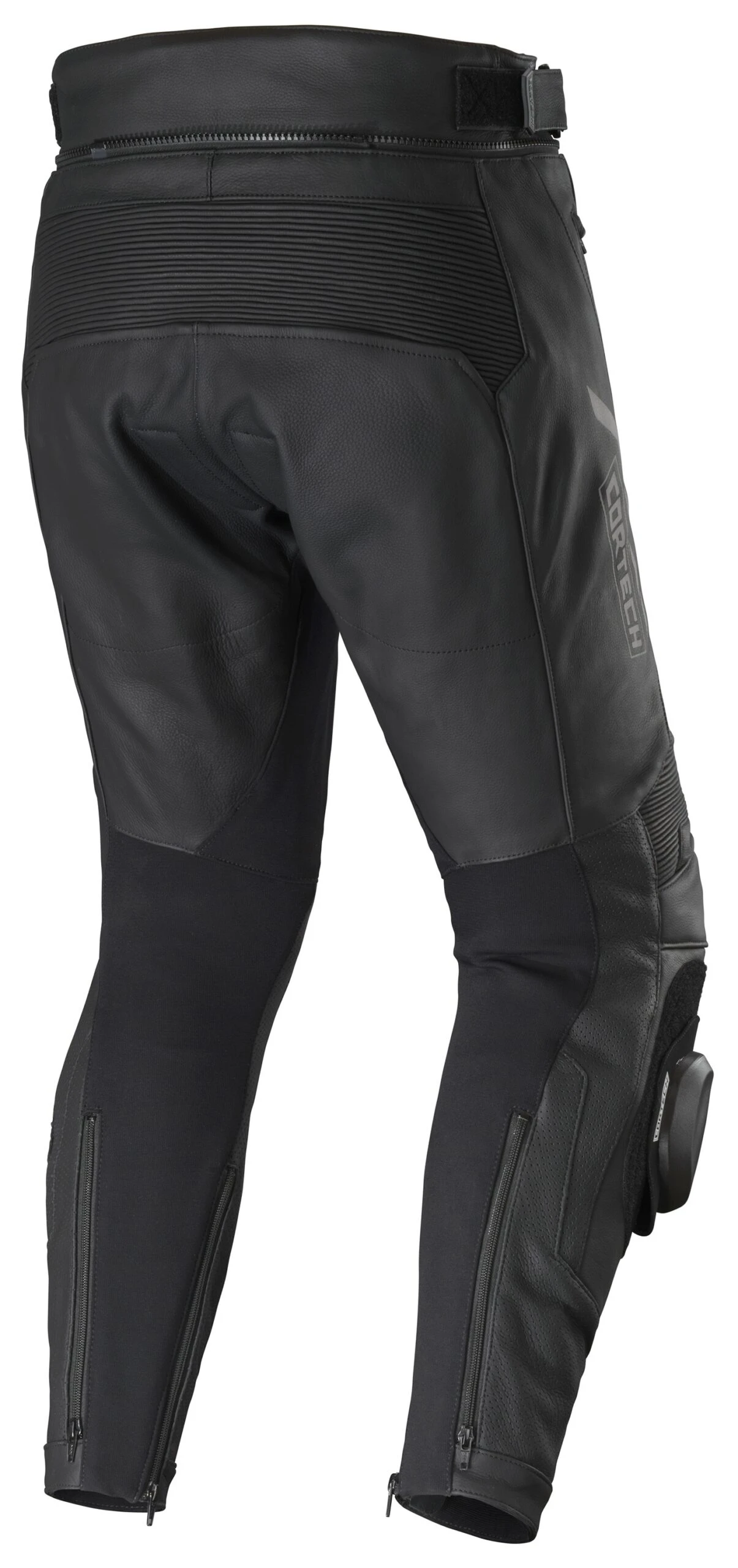 The Cortech Revo Sport Pants pair with the Revo Sport Jacket to form an all-beef two-piece combo. These pants feature cowhide leather construction with four-way stretch panels along the inner legs and calves, plus leather accordion stretch panels at the knees and waist. CE Level 1 knee armor is included, as are the knee sliders. Choose between the 8″ jacket-pants connection zipper for a street-friendly setup or the full 360-degree connection zipper for taking on the track. If you want to pair these pants with a different manufacturer’s jacket, Cortech has you covered with matching halves for each connection zipper.