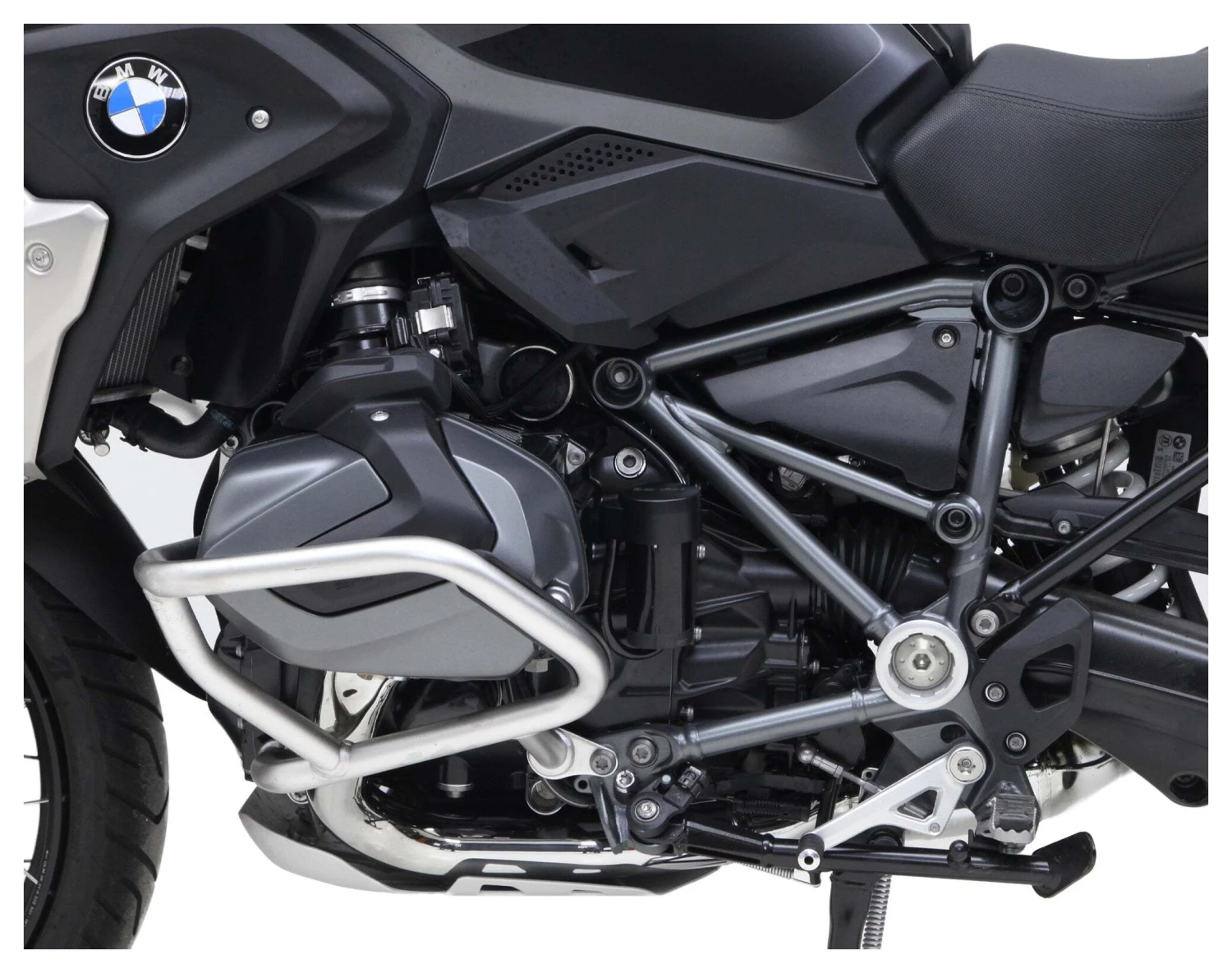 This vehicle specific split horn mount allows you to mount the Denali SoundBomb Split Dual-Tone Air Horn in the optimum location on your BMW R1200GS/GSA or R1250GS/GSA. This kit includes one powder-coated steel bracket to mount the horn compressor behind the cylinder head and a second bracket to mount the horn acoustic unit centered under the fairing stay.