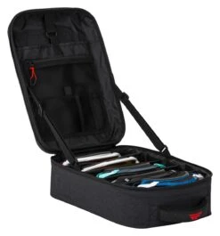 - Adjustable buckle closure system on shin plate for increased retention in variable conditions