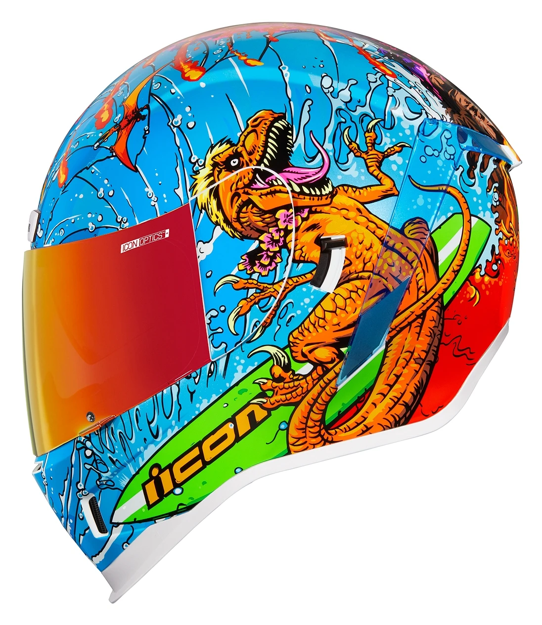 Together with the airflow channels formed in the EPS liner, the Hydradry moisture-wicking interior keeps your head dry. A sculpted neck roll lets you move into and out of the tuck position without as much interference with your jacket, one less thing to distract you while you are riding. Speaker pockets make it easy to install Icon’s R.A.U. Bluetooth Communicator so you can stay connected.