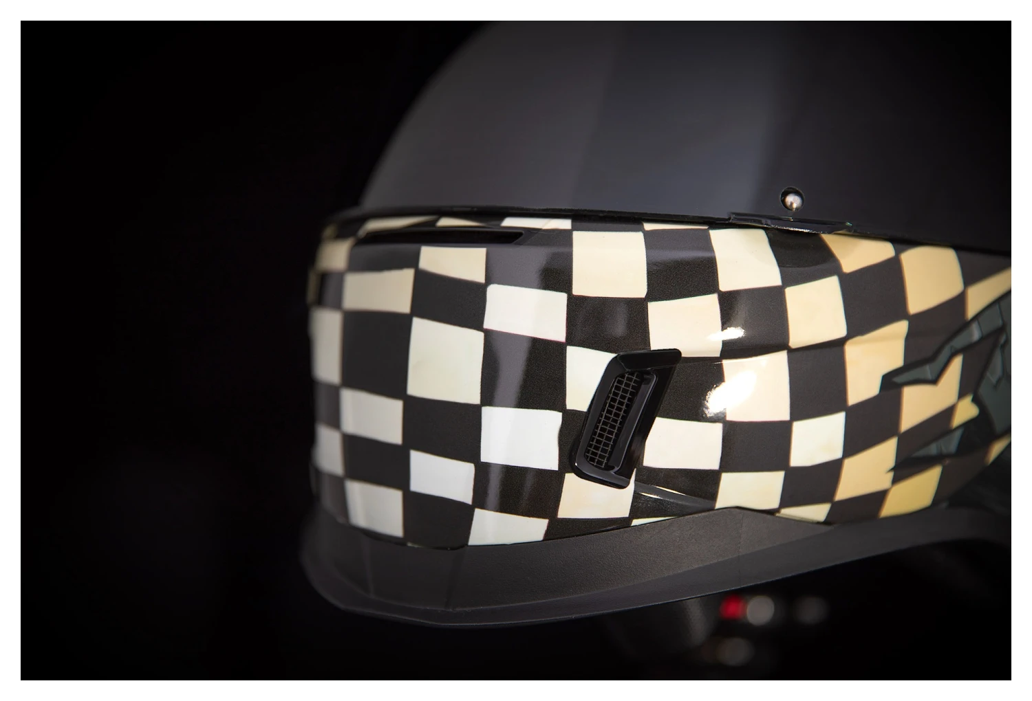 Together with the airflow channels formed in the EPS liner, the Hydradry moisture-wicking interior keeps your head dry on those hot Talladega nights, so stay loose out there and enjoy the fast times. A sculpted neck roll lets you move into and out of the tuck position without as much interference with your jacket, one less thing to distract you while you are riding. Speaker pockets make it easy to install Icon’s R.A.U. Bluetooth Communicator so you can stay connected.