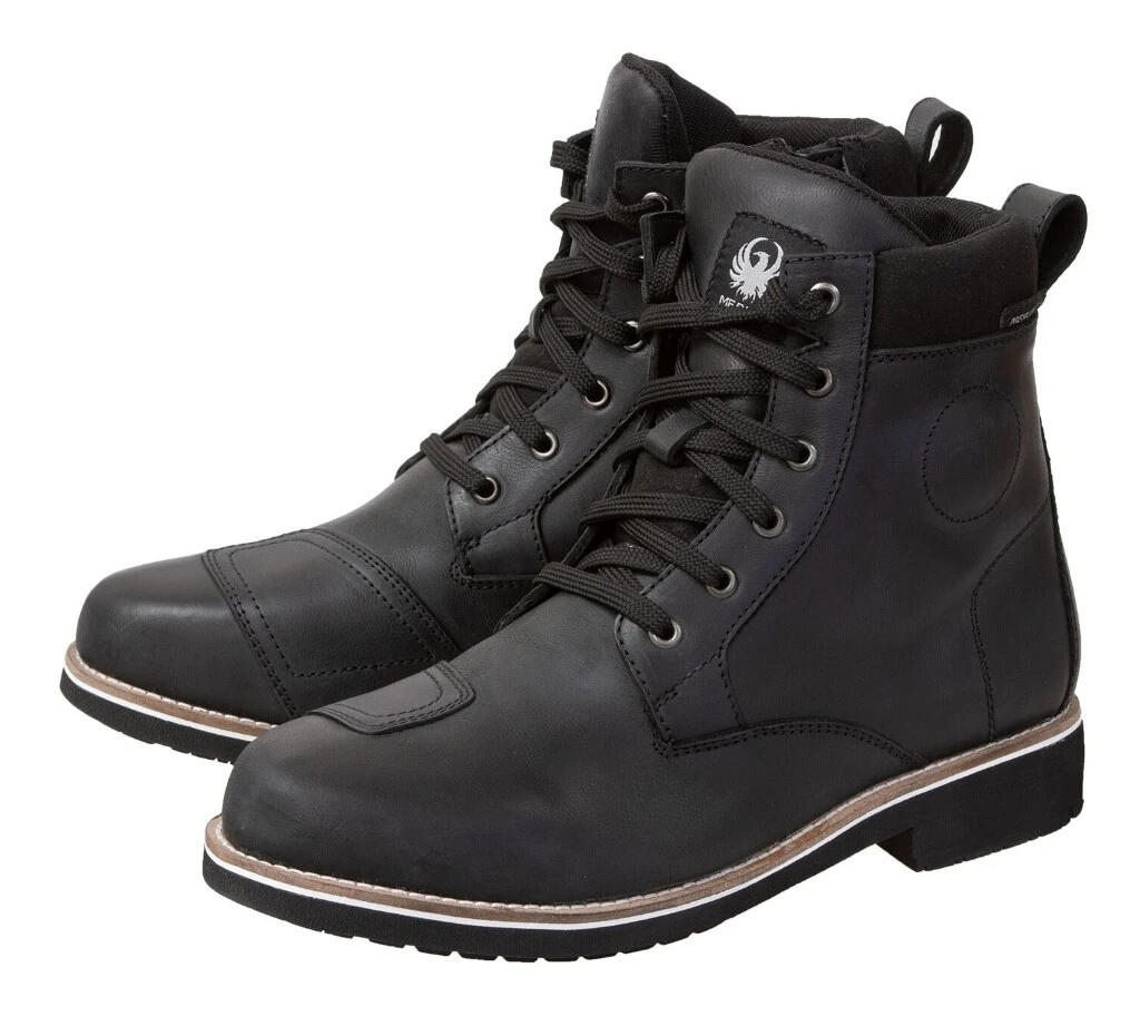 The Merlin Ether Boots are a round toe riding boot with a waterproof liner and symmetric shifter pad overlays. These go-anywhere boots use full grain cowhide over a reinforced heel, ankle and toe box. The sturdy foot bed is CE rated, and D3O impact absorbing inserts are placed around the ankle for protection.Â