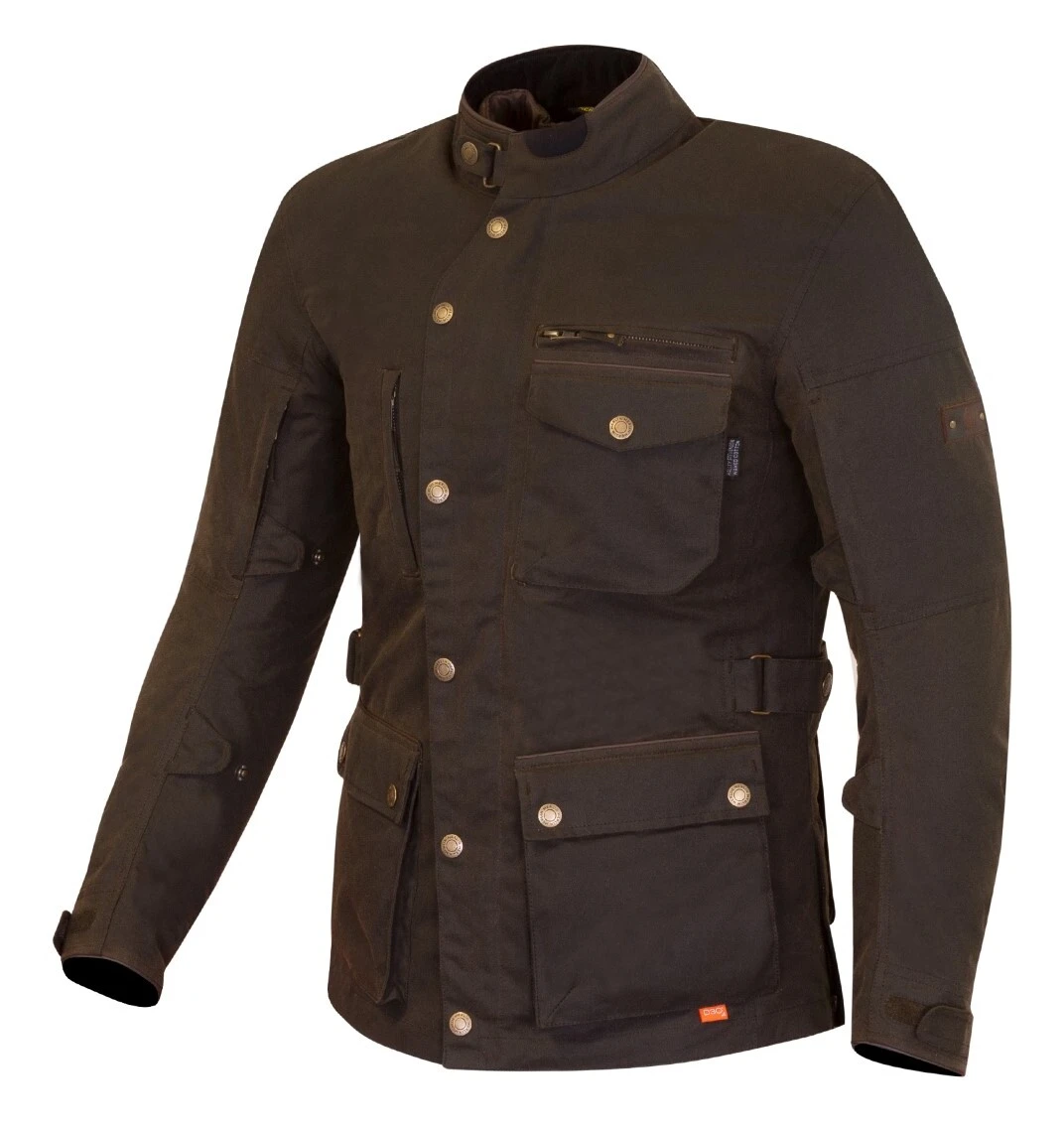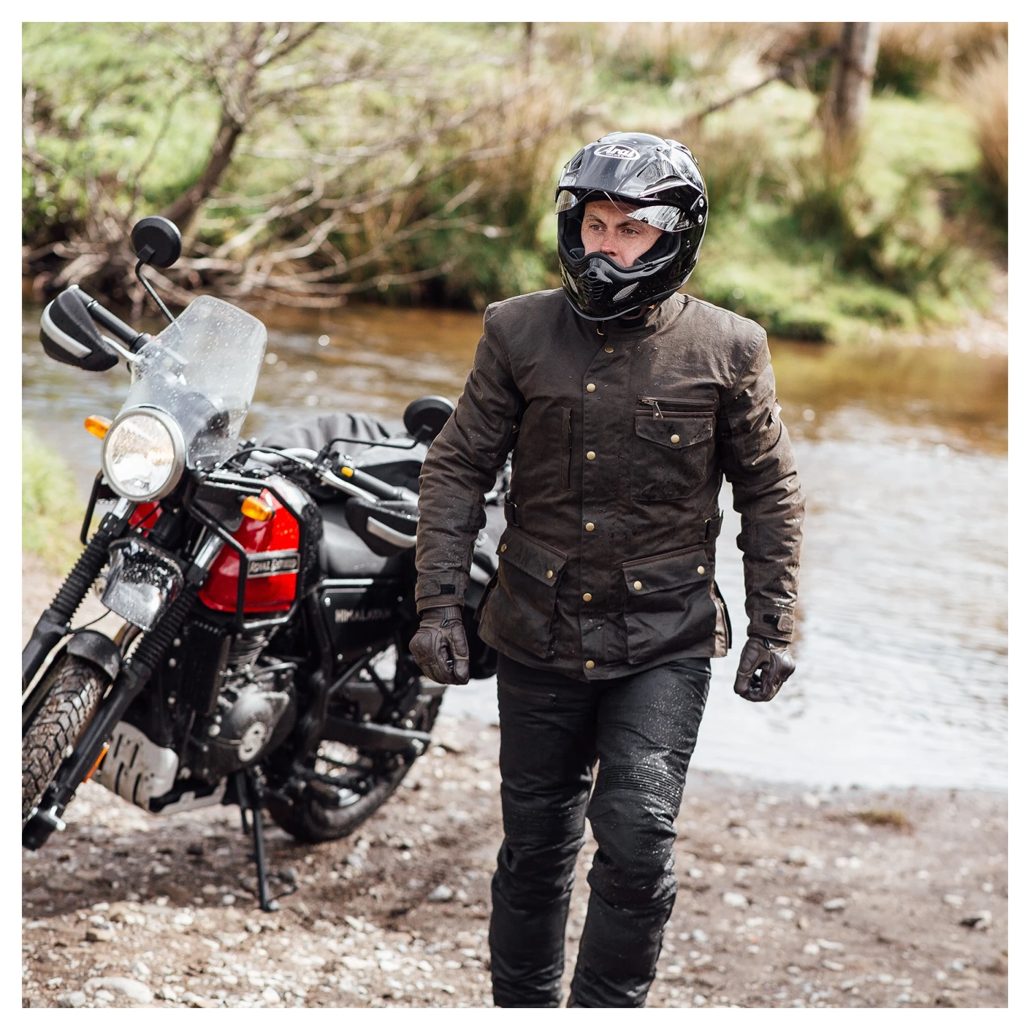 The Merlin Monty Jacket continues the tradition of the four pocket trials jacket and adds protection afforded by 12oz Halley Stevensons Scottish Silkwax Cotton technology. Featuring a zip out Reissa membrane and 125g thermal liner, the Monty will surely keep you warm and dry on every adventure. A full suite of D3O armor helps keep you protected, while the antique snaps provide stylistic accenting.