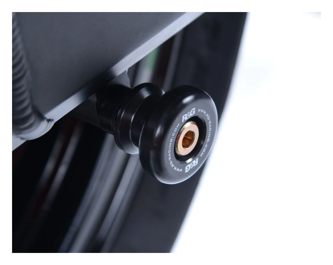 R&G Racing Swingarm Spools provide a set of hoisting points when using a rear stand and also help to prevent swingarm rash in a slide by providing some elevation.