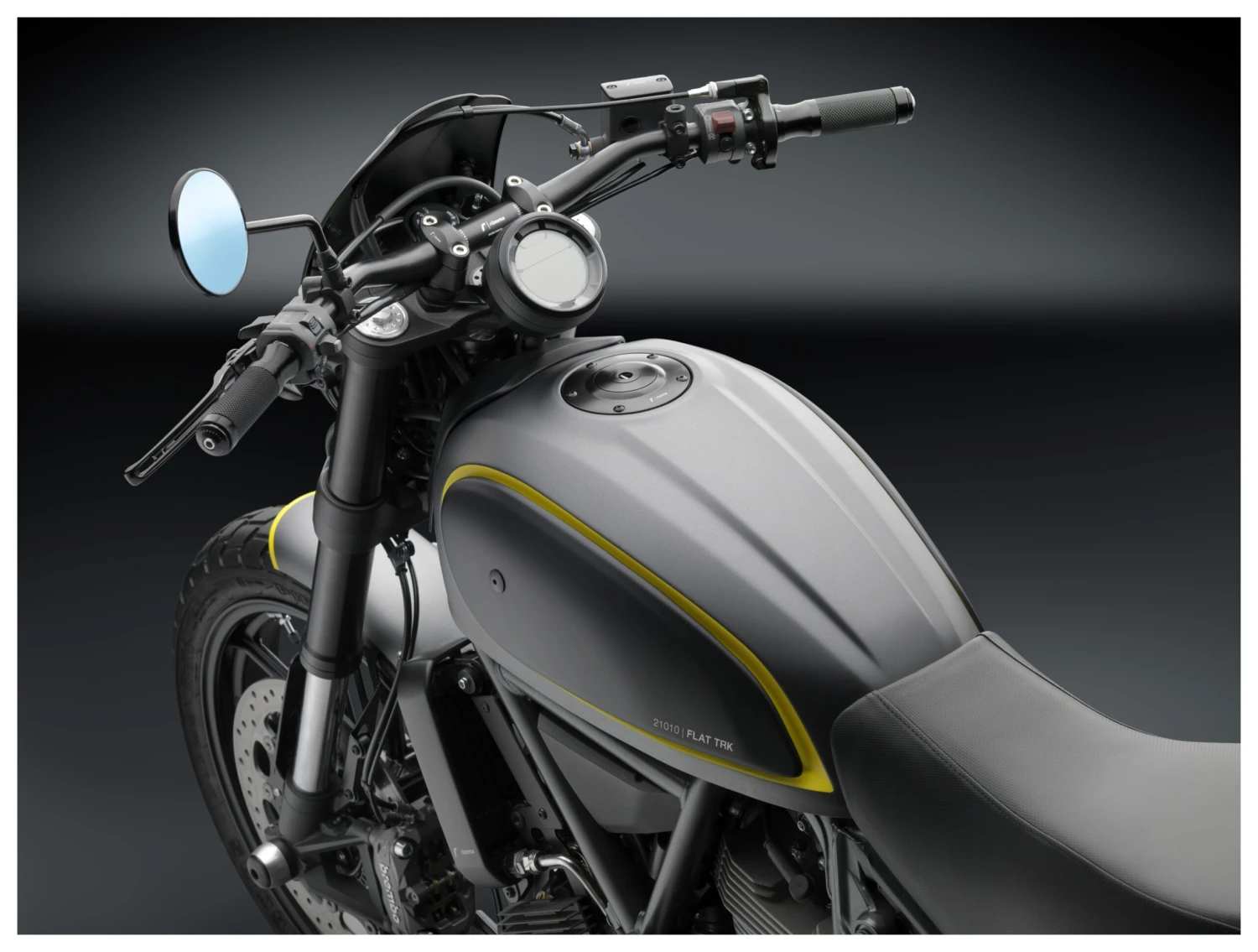 Rizoma has taken the guesswork out of modifying the control area of your Ducati Scrambler. This kit includes a pair of 1-1/8″ handlebar risers and a relocated gauge housing. Both pieces are CNC-machined from billet aluminum and anodized for a long lasting shine.