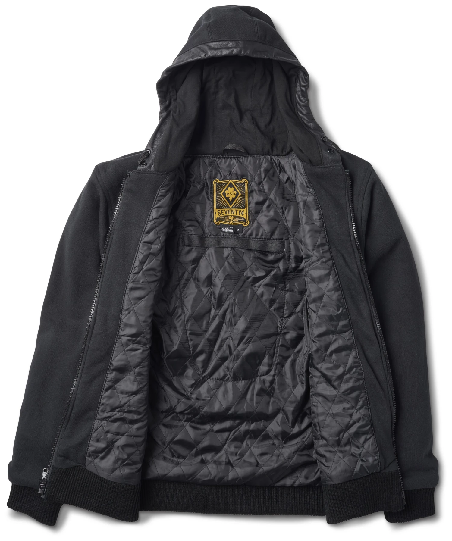 The Obispo Hoody by Roland Sands is going to be your go classic black hoody to when jumping on the bike for rip. Constructed of a heavy-duty fleece outer shell, the Obispo is fully lined with aramid in case things get gnarly. The outer zipper welt, hood lip and pocket welts have been lined with leather to elevate this style while the interior is a plush quilted satin poly for comfort.Â