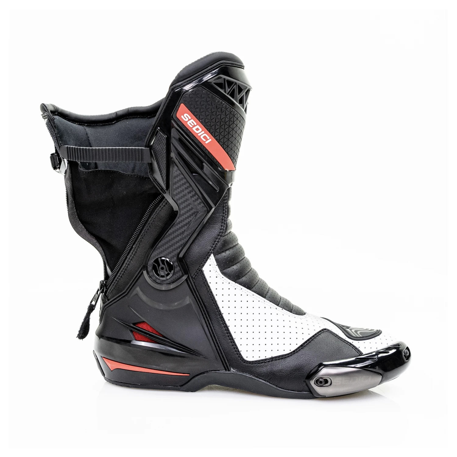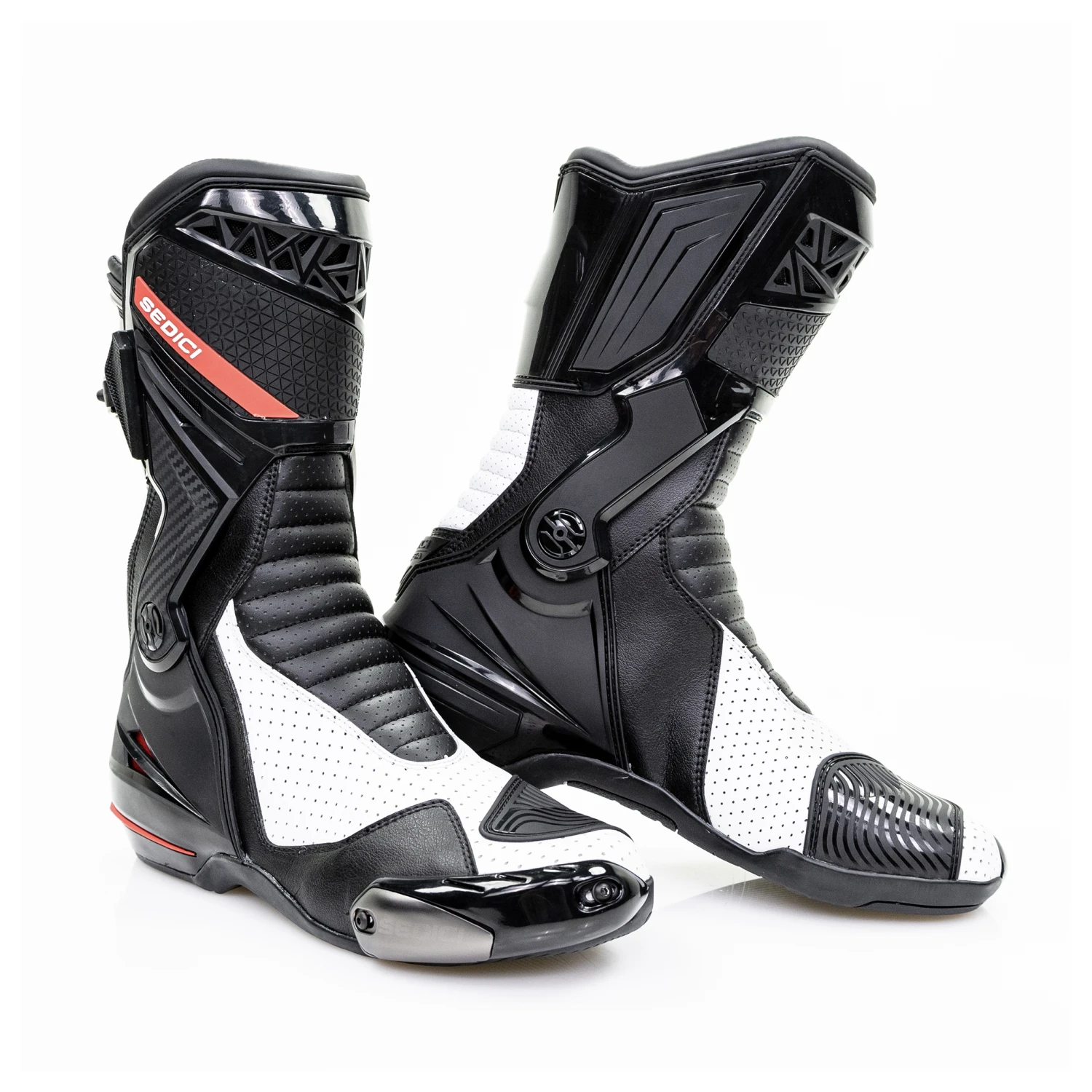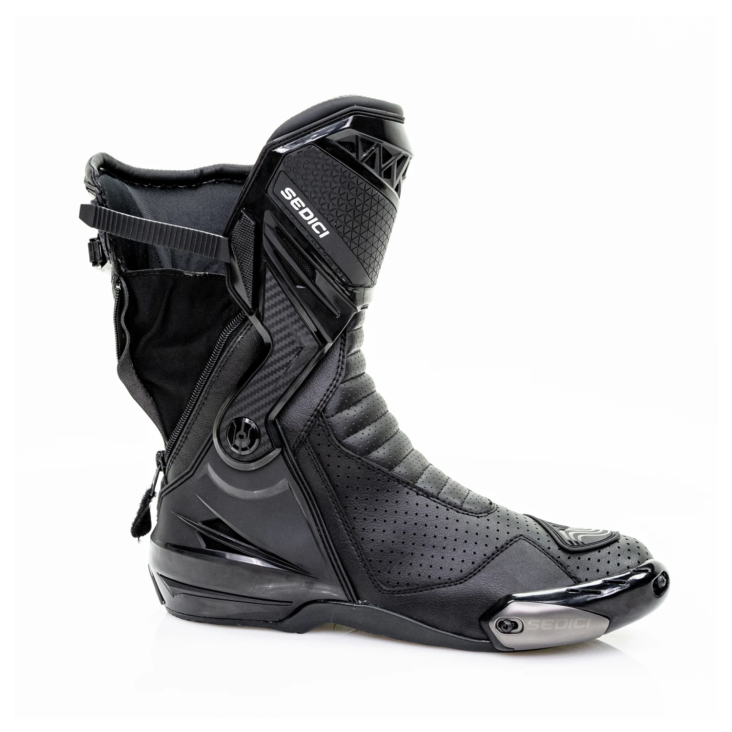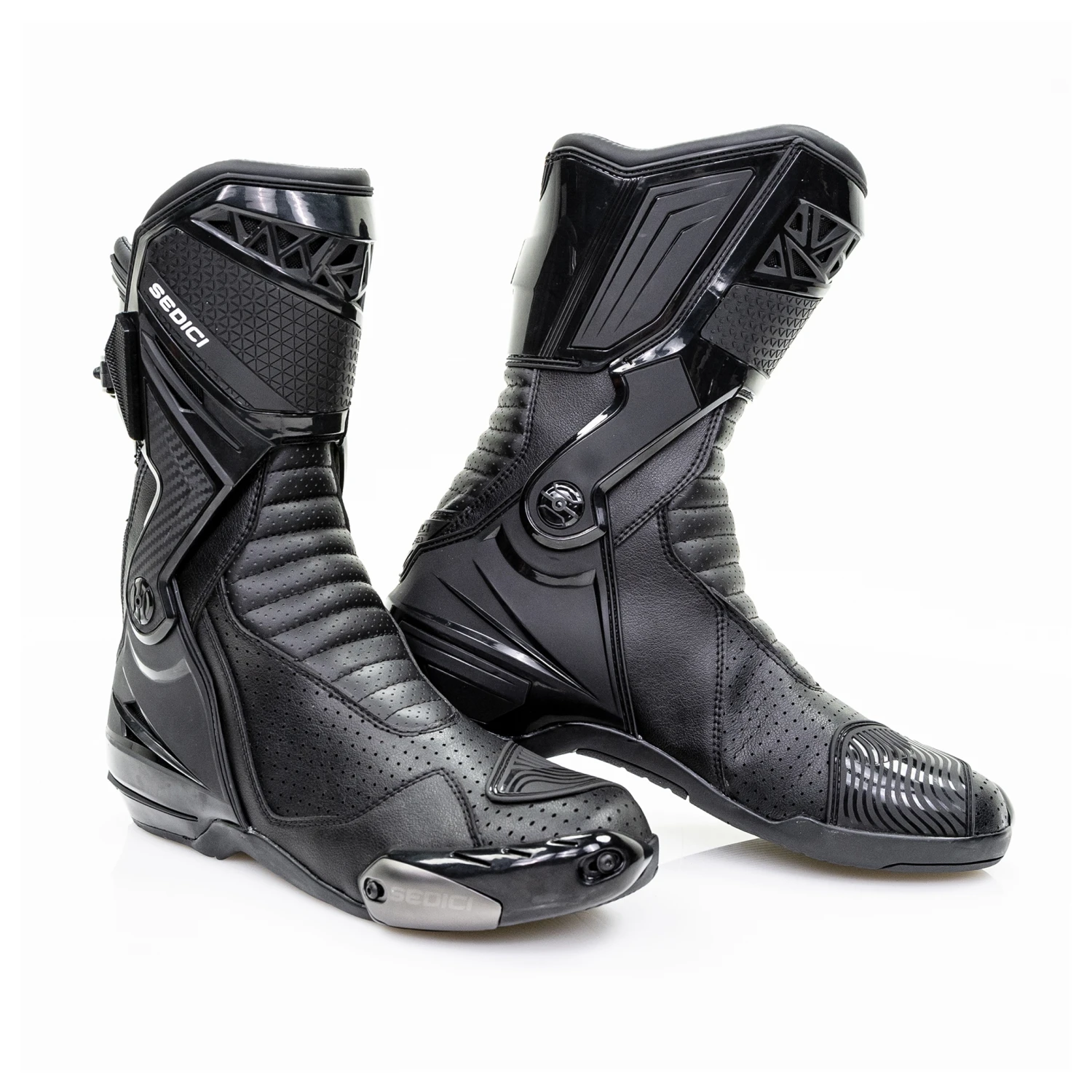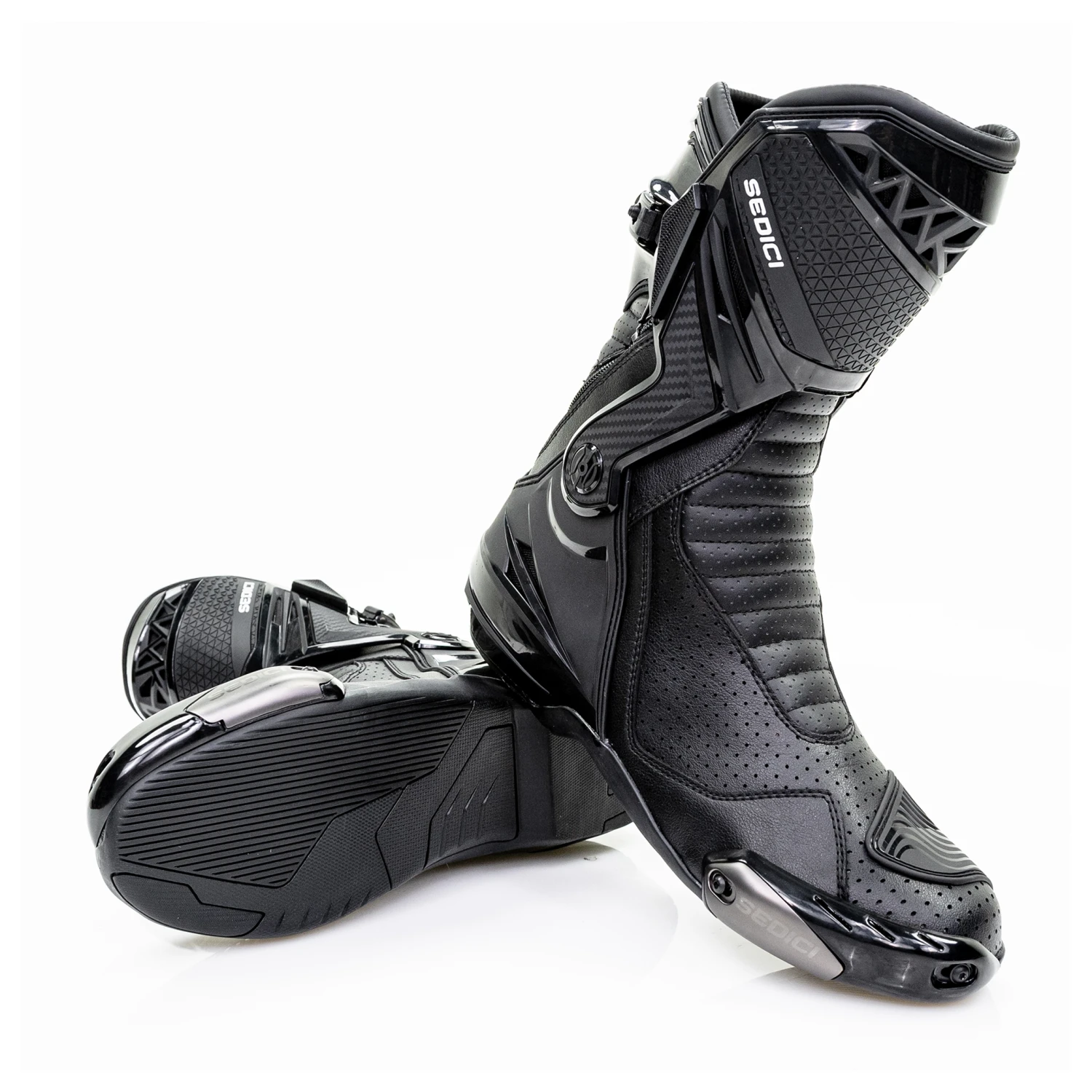 The Sedici Corsa boots feature an advanced external dual hinged support for increased protection by limiting torsional twist and lateral movement while still maintaining ankle mobility dexterity on the controls. The all new oil resistant rubber sole allows for better traction at the outer foot and solid textured sections at the inner foot and arch for durability when used with aggressive footpegs.