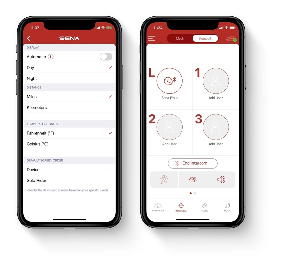 • Sena Motorcycle app provides a way to visually configure and connect to other riders